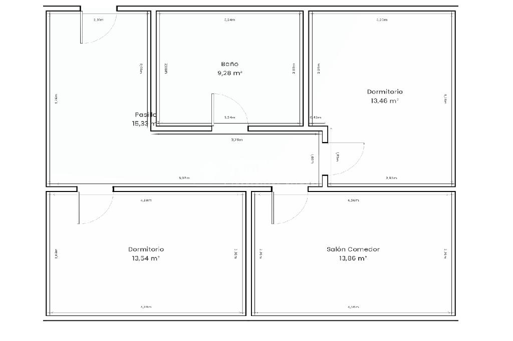 La vivienda tiene una distribución muy cómoda y bien aprovechada. Al entrar, un pasillo distribuidor da acceso a la primera habitación. Justo enfrente se encuentra el baño completo. Al avanzar por el pasillo se abre el espacio principal de la casa: un salón-comedor amplio y luminoso con cocina americana integrada, creando un ambiente moderno, funcional y muy acogedor. Al final del recorrido se sitúa el segundo dormitorio.