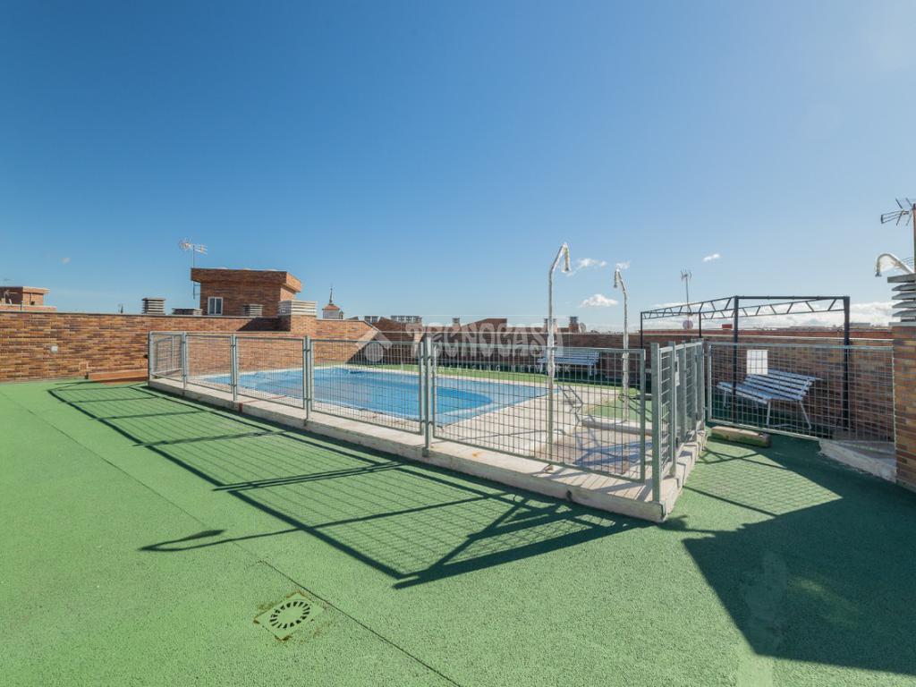 El edificio cuenta con piscina comunitaria, perfecta para disfrutar en verano sin salir de casa.