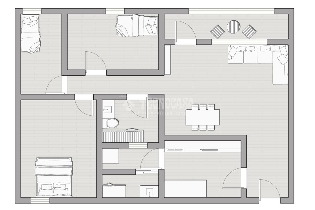 La vivienda cuenta con 3 dormitorios, uno de ellos matrimonial y dos cuartos de baño con plato de ducha.